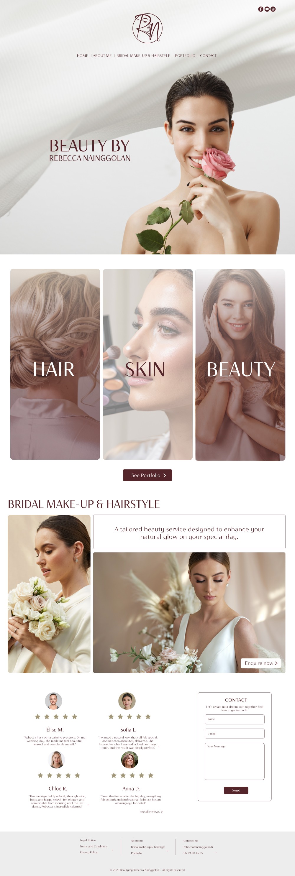 L’identité visuelle repose sur un logo raffiné et intemporel, associant les initiales de Rebecca Nainggolan à un profil féminin élégant.